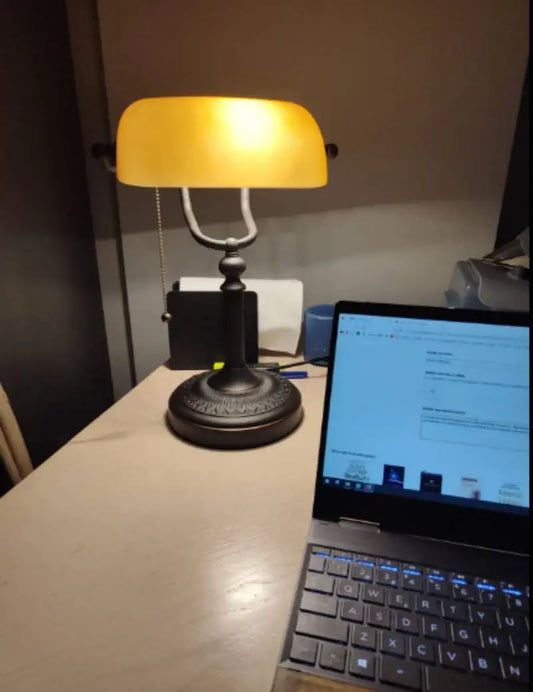 Vintage Glass Banker's Lamp with Zipper Switch